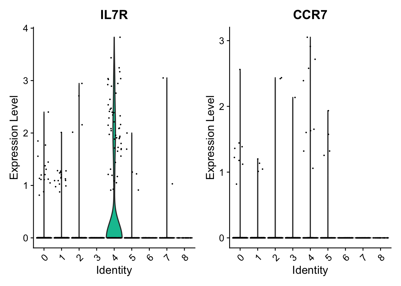 También podemos trazar un gráfico de violín para cada gen.